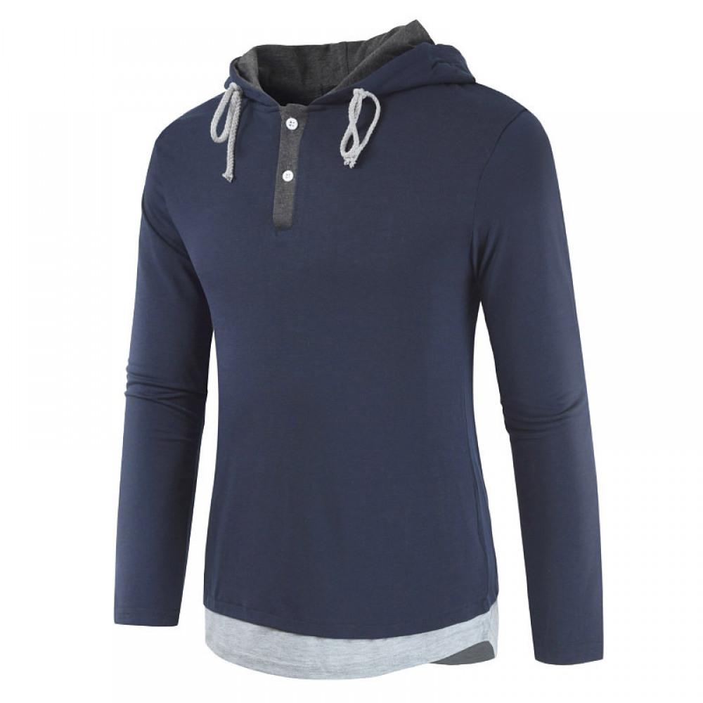 Fashion Sweater New Men's Fashion Street High Street Style Two-Piece Hooded Drawstring Long-Sleeved T-Shirt