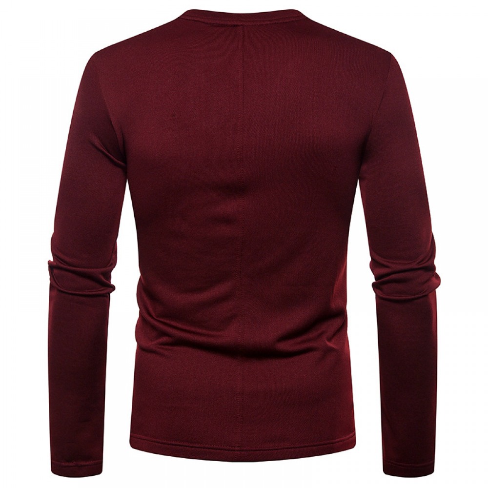 Men's Plus Size Plus Velvet Warm Henley Collar Long-Sleeved T-Shirt Bottoming Shirt