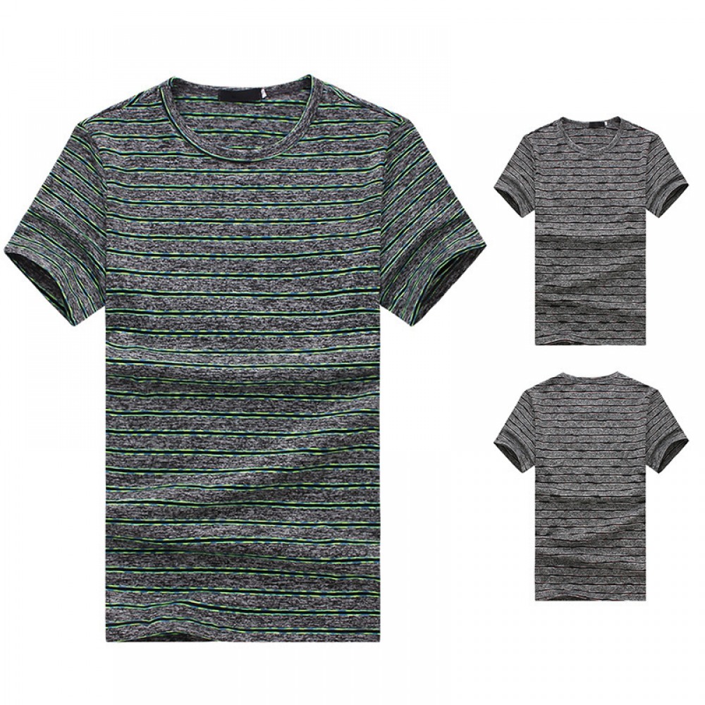 New Summer Men's Short-Sleeved T-Shirt Men's Contrast Striped Slim Casual T-Shirt