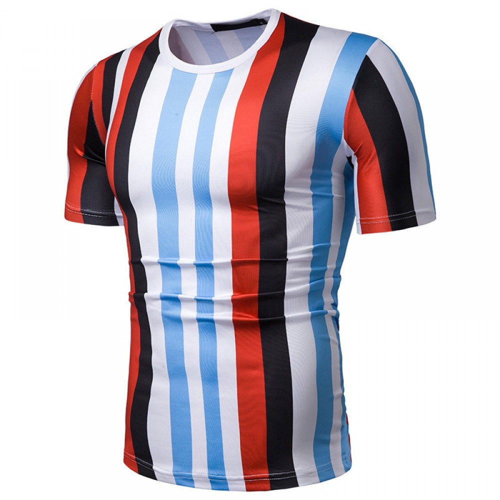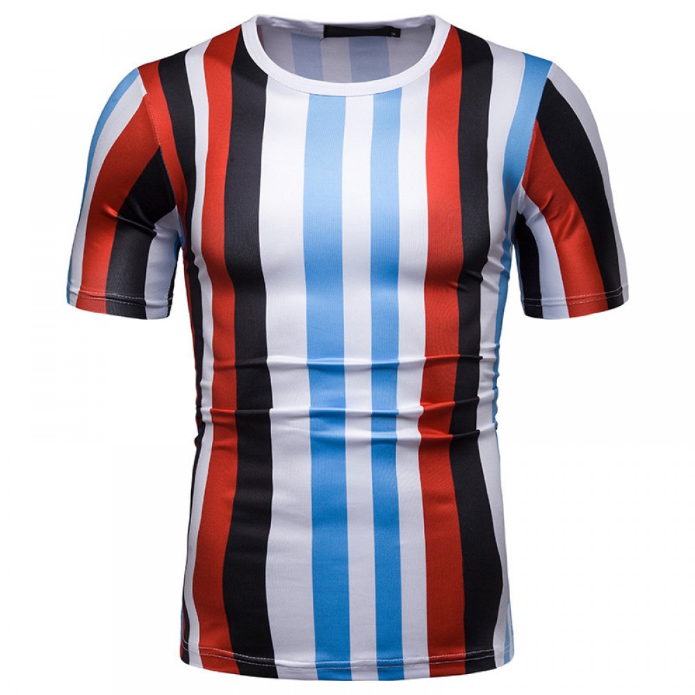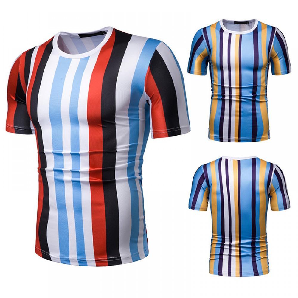 New Summer Men's Short-Sleeved T-Shirt Mens Contrast Striped Slim Casual T-Shirt