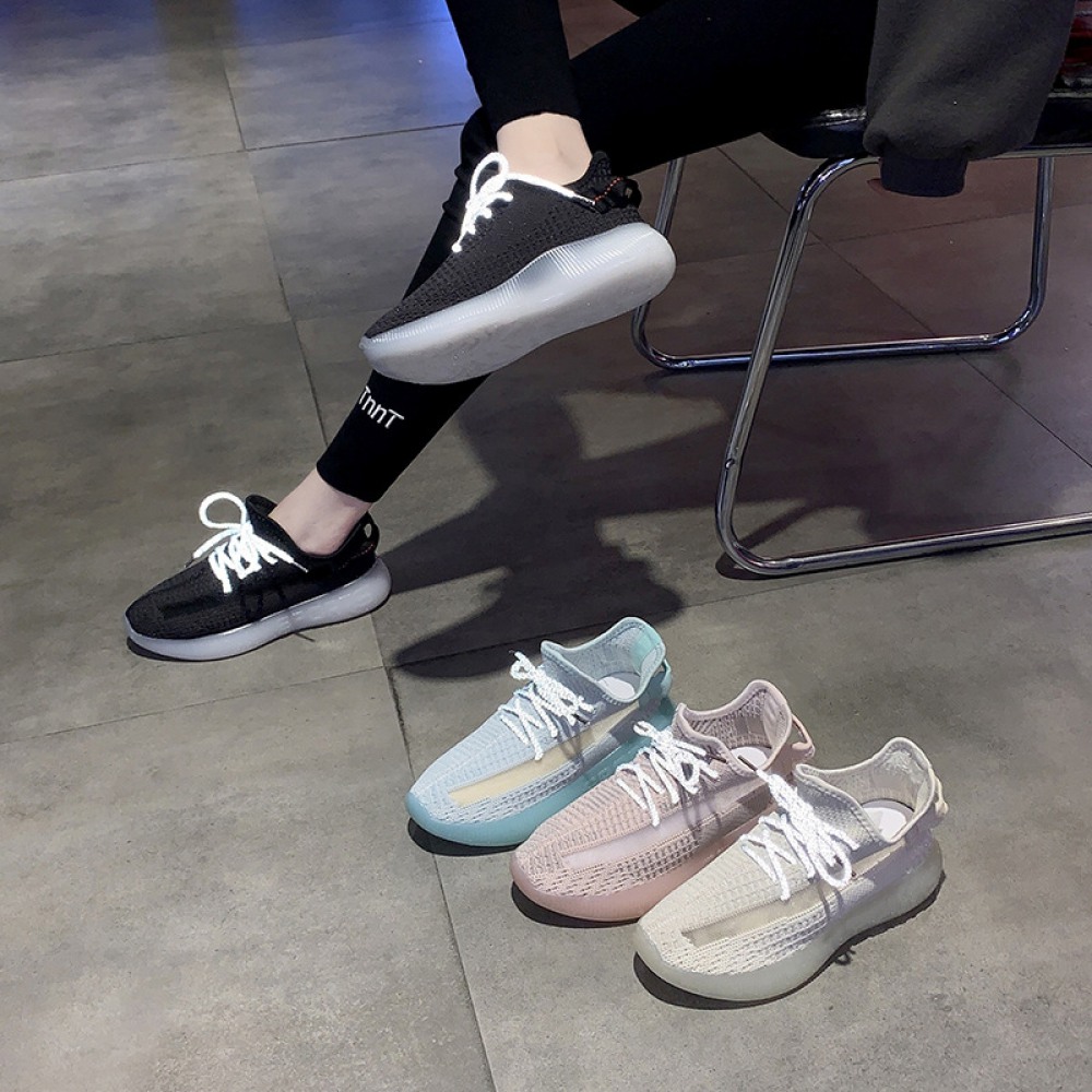Spring And Summer New Flying Woven Women's Shoes Women's Sports Shoes Female Students Breathable Running Sneakers