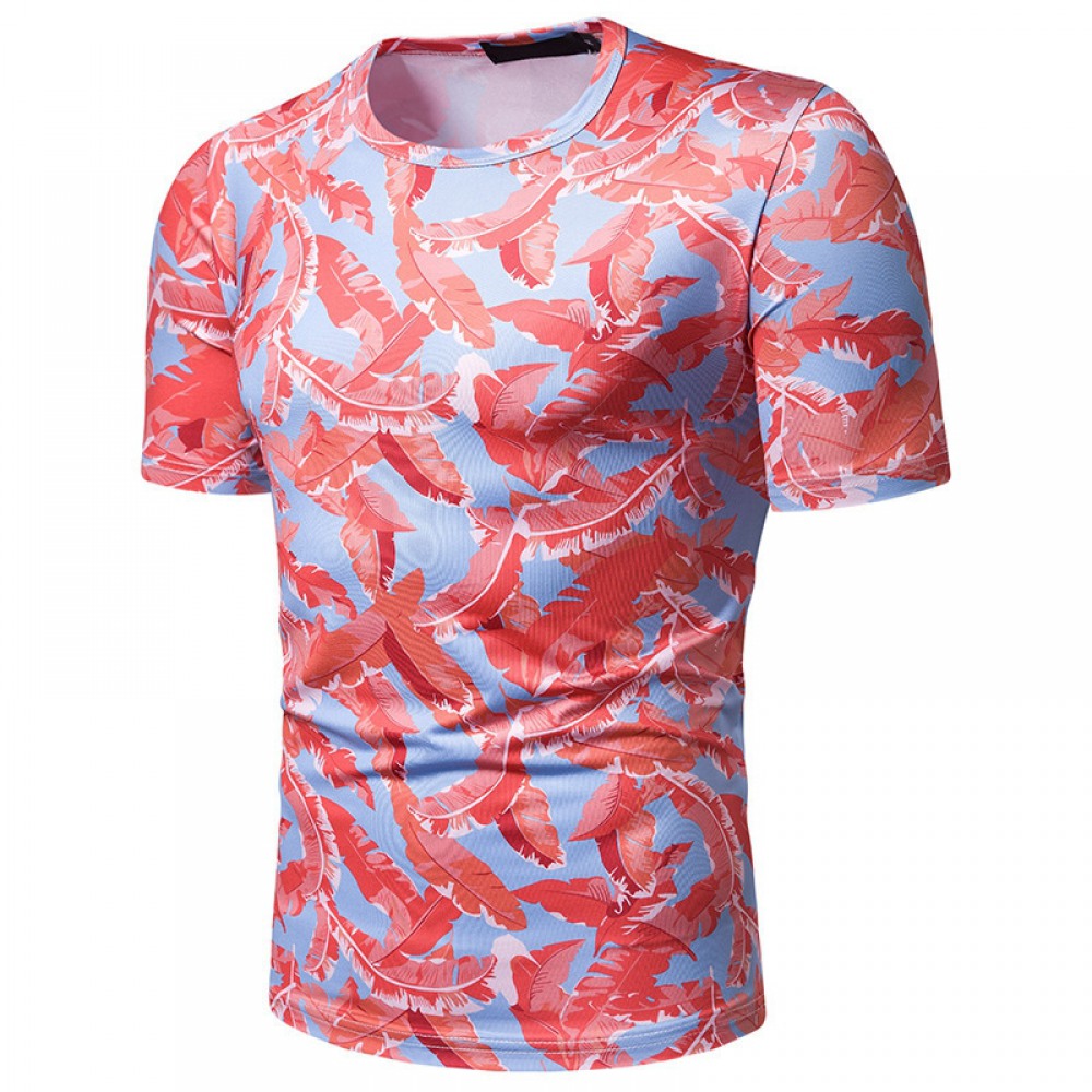 New Summer Men's Beach Style Printed Short-Sleeved T-Shirt