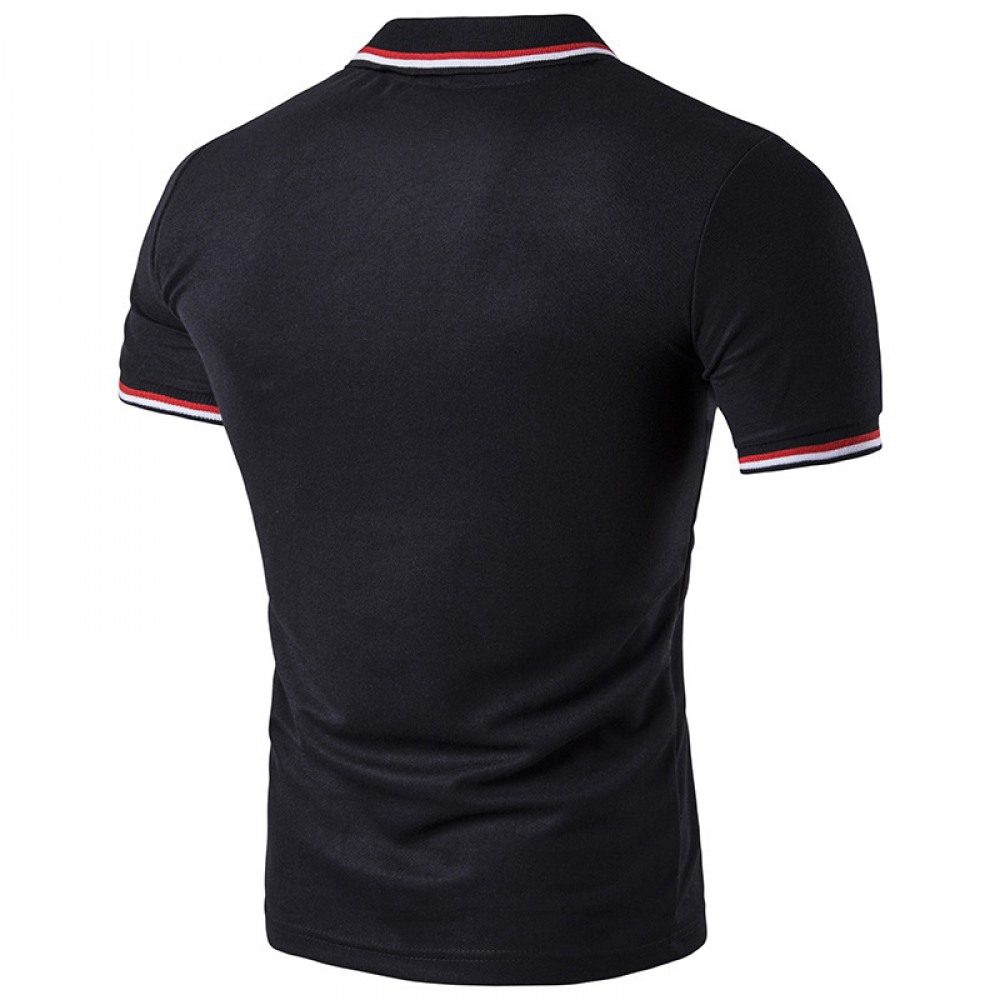 Summer New High Street Personality Cuff Striped Placket Stitching Men's Lapel Short Sleeve T-Shirt