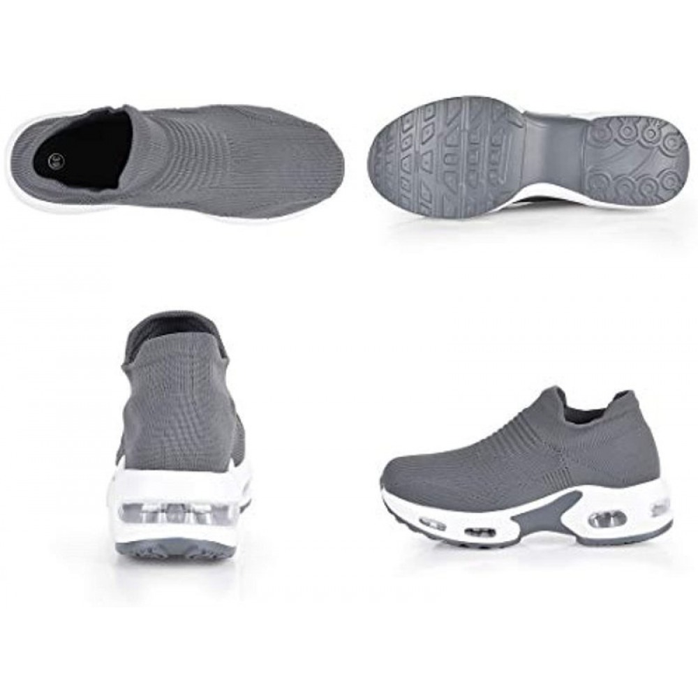 Womens Walking Shoes Sock Sneakers Slip On Mesh Platform Loafers Comfort Wedge Walking Shoes Grey
